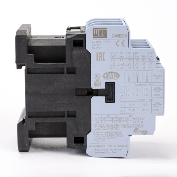 Forma parte de la serie CWB de WEG, reconocida por su alta confiabilidad, larga vida útil mecánica y eléctrica, y amplia disponibilidad de accesorios como bloques de contactos auxiliares, supresores de sobretensión y temporizadores.