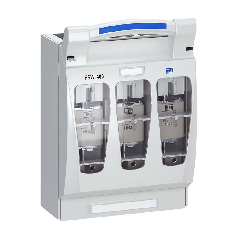 El Seccionador Portafusible WEG FSW 400A es un interruptor-seccionador fusible tripolar desarrollado bajo la norma internacional IEC 60947-3 con certificación CE. Permite la interrupción y el seccionamiento de circuitos eléctricos industriales, brindando protección contra cortocircuito y sobrecarga mediante fusibles NH2.